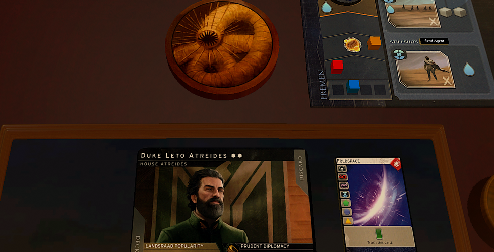 One part of the game that we included (for 1 and 2 player games) is the AI cards to simulate another player. The AI was ok it was annoying enough that you had to deal with it occasionally in the game. The AI tied me one turn in the battle and I ended up losing out on a victory point. I would say its a decent AI system as far as they go in board games. Speaking of AI but not really the Tabletop Simulator module that Brickhouse posted is great there is a lot of scripting that helps set up and run the game and tons of shortcut buttons to reset the board after every turn. I highly recommend using it especially if its your first go at Dune Imerium.