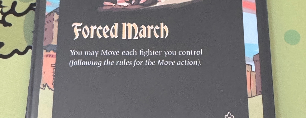 So you have all these cards and the game board what do you do with it all? The 2 player game is on a 3x3 grid. Each player controls a stronghold on their side of the board. The goal of the game is to run the other player out of cards. This is done by laying siege the other players stronghold. Laying siege just means that players have one or more of their fighters on the other players "gates" space.