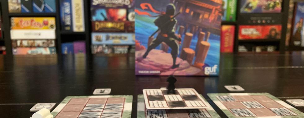 The Bansen seals of your ninja clan have been stolen. Can you get them back before your opponents? Collect Jutsu to support your floating floors. Your ninja will have to travel the path of light or dark over the floating floors to retrieve the Bansen seals. But ninja be ware the floating floors may not be as stable as they seem. Join me as we take a look at the upcoming game from Guf Studios, Floating Floors by Takashi Sawada.