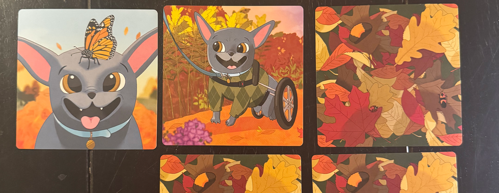 Puppies or Poop was an instant hit at our house, our 5 year old picked it up right away and wanted to keep playing it. I think this game is good at 2 players and it really shines at three and four players. When playing with 3 and four players there is a lot more unknown information on the board and it makes the game more challenging. The two player version has a more strategic feel too it. Either way players can enjoy trying to bluff the others at any player count. This beautiful light fall themed game is perfect for to bring with you on the go due to its size and quick game play.