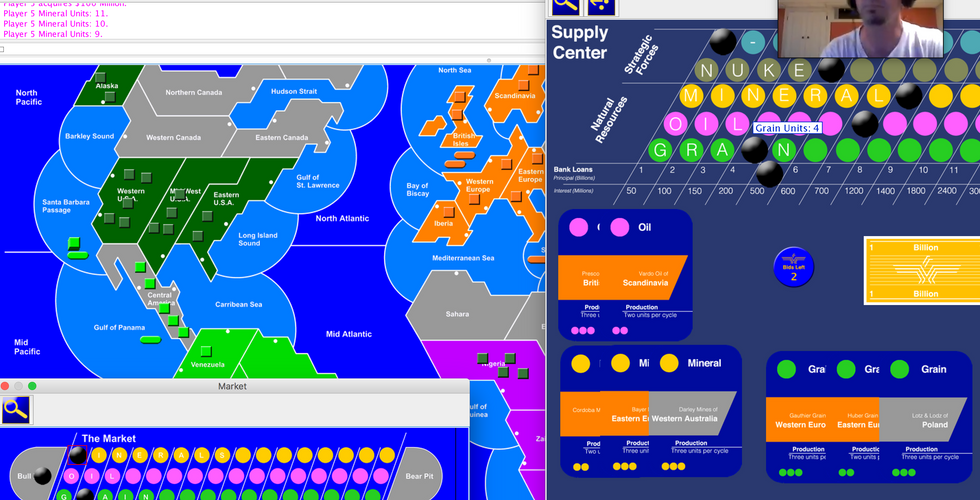 This game is quite silly. Its a very basic game that tries to re create the cold war. The rules are decent, not great but they work. There is a market system that gets exploited way too easy. Another feature is a the simulation of the 80s Star Wars program. Where you can use your defensive L-Star satellites to shoot each other in orbit. You can also use them to stop nukes.