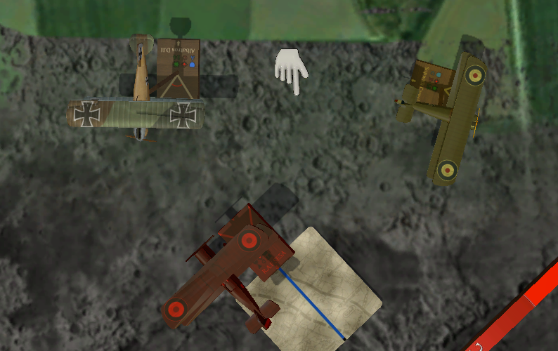 travel. You place the card down with non arrow side of the line touching the middle of the front of your plane then move your plane so that the middle of the back edge of the mini is on the arrow. Its a rather easy system and makes the game move fast. There is a lot issue when you get in close and there is no room for cards or minis.